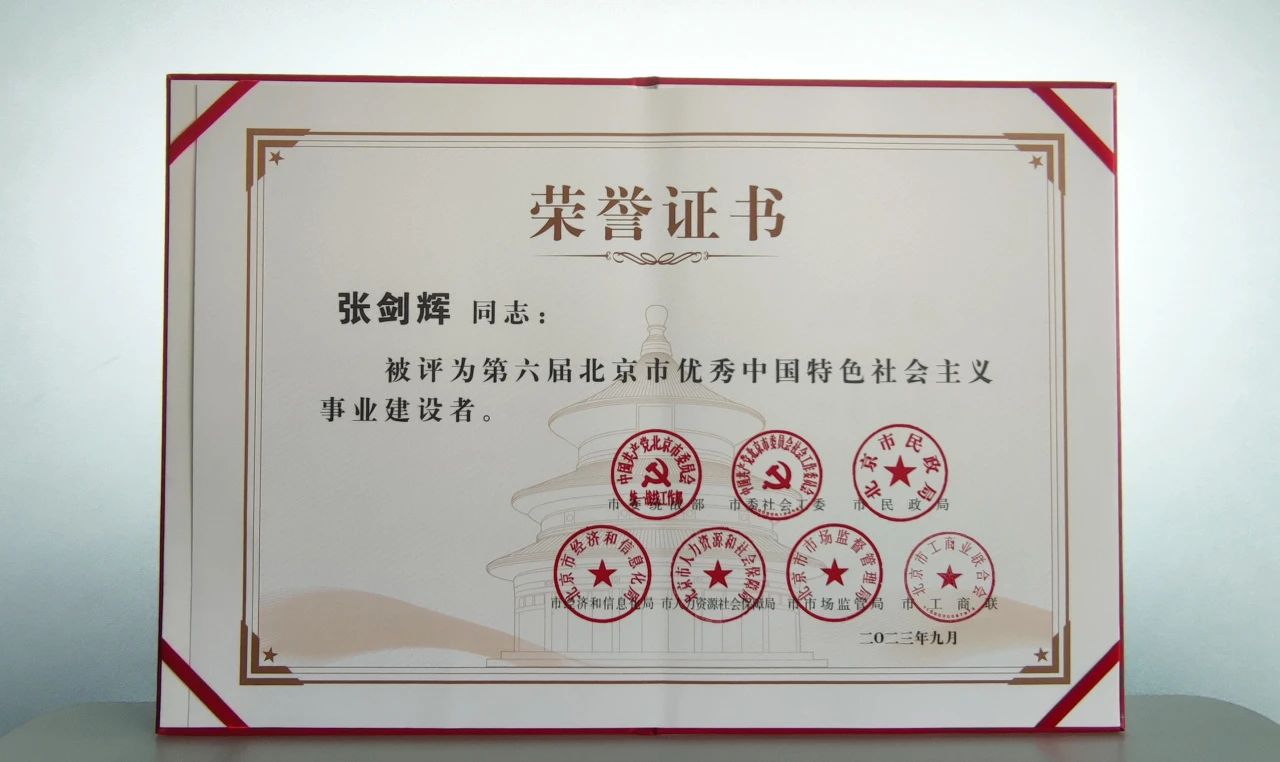 9月8日,第六屆北京市優(yōu)秀中國特色社會主義事業(yè)建設(shè)者表彰大會召開,海博思創(chuàng)董事長、總經(jīng)理張劍輝榮獲 “北京市優(yōu)秀中國特色社會主義事業(yè)建設(shè)者”稱號。