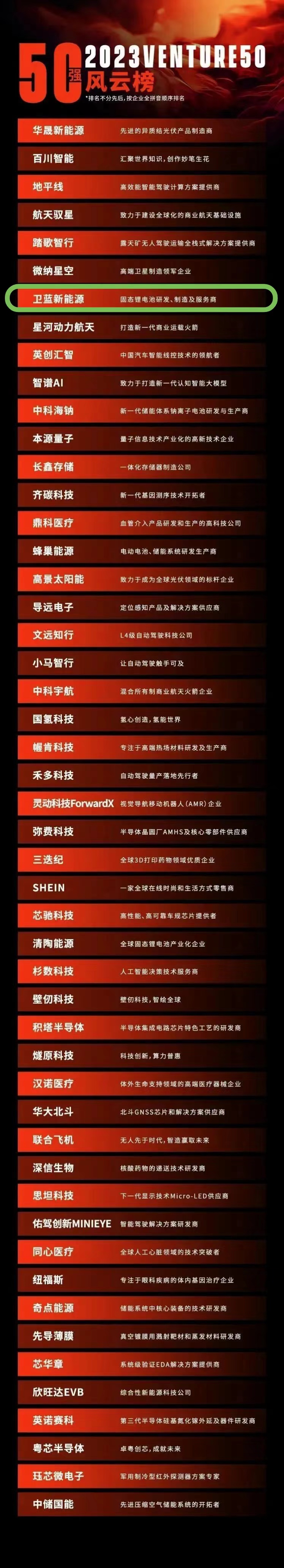 2023VENTURE50風(fēng)云榜