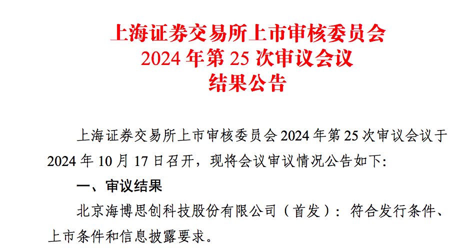2024年10月17日,上交所科創(chuàng)版上市委員會2024年第25次審議會議結(jié)果公告,北京海博思創(chuàng)科技股份有限公司(以下簡稱“海博思創(chuàng)”)首發(fā)順利過會。
